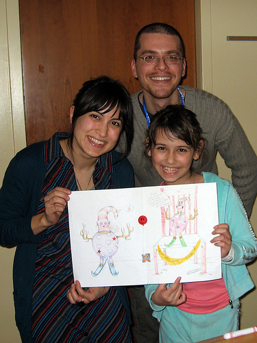 Thank you Tricia Kleinot and Rami Efal for creating holiday drawings with two wonderful kids today! Rami drew bedside with a 7-year old boy who wanted to make a special picture for his 4-year old brother and Tricia got to create fun Christmas cards with a 10-year old girl, her mom, and her grandparents! Thank you everyone for a festive end to a great year.