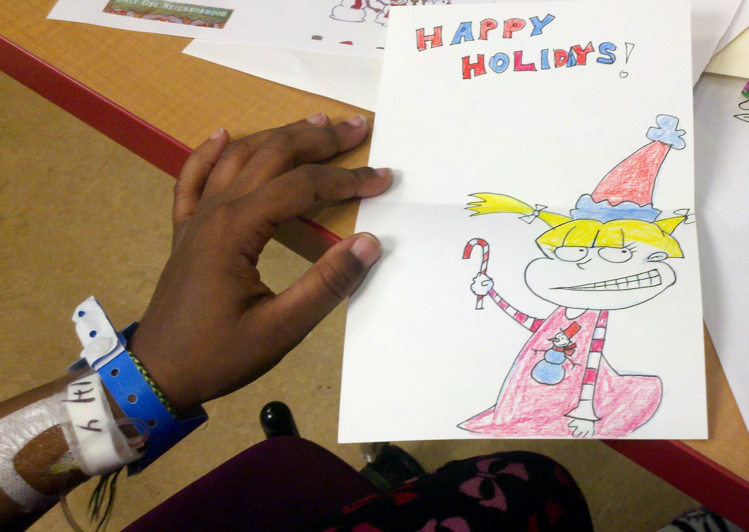 We were thrilled to welcome five National Cartoonists Society artists at this first-time event in Chicago! These artists and the kids of Children’s Memorial did a fantastic job making cartoon holiday cards together, and in making even more cards for those kids who weren’t able to make it down to the rec room. Thank you thank you thank you to Brian Kelly (Event Leader and NCS Chicago Chapter President), Brian Diskin, Charles Boyce, Ann Farrell, and Timothy Jackson!