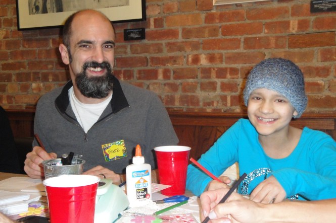 This darling boy, who is staying at the Ronald McDonald House, was not able to attend our Valentine’s Day card making party so we wanted to make him something special. He told us his favorite character is SpongeBob and that he loves pizza so we contacted IWF volunteer and former SpongeBob artist, Monica Tomova, out in Los Angeles and told her about his story and she knew just what to do. When we delivered her drawing, this little guy peeked out from behind his mother’s leg, eyes growing wide with excitement, then he ran over to us and took the drawing with a giant smile, showed his mom and smiled some more. Thank you, Monica, for making one brave boy’s day so much brighter.