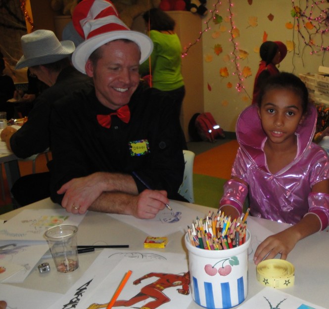 We had a blast drawing vampires, pumpkins and bats with the kids and also painting their faces at Gilda’s Club New York! The kids drew like they were possessed and we felt like zombies trying to keep up but everyone had a fantastic time. Thanks very much to the wonderful families and staff at Gilda’s Club and to our dedicated Ink Well volunteers: Jane Archer, Joan Chiverton, Drew Dernavich (first timer!), Barbara Garrison, Dayna Gonzalez, Abby Merrill, Patrick Merrell, Oded Naaman, Maria Scrivan, Elizabeth Winter and Karrie Witkin.