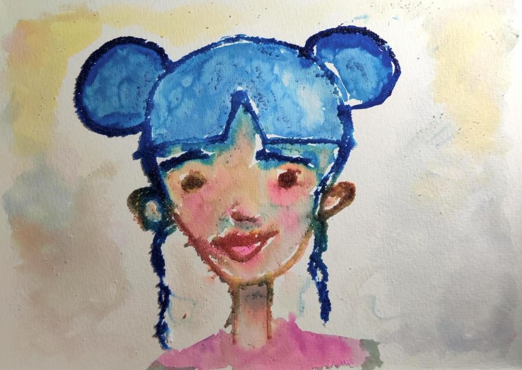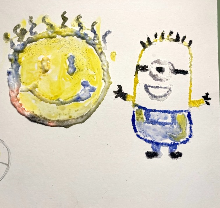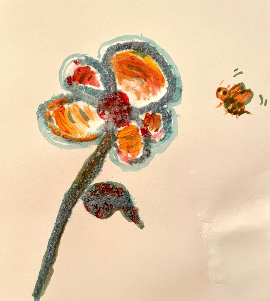 It’s really cool how the glue and salt interact with paint. Have a look and give it a try yourself! Just draw a sketch, cover it in glue, sprinkle salt, and drip watercolor paint or food dye over it.