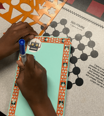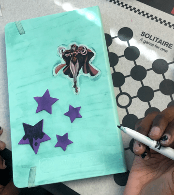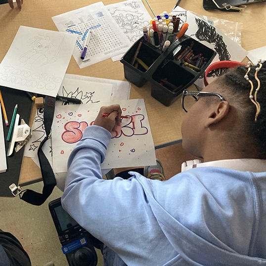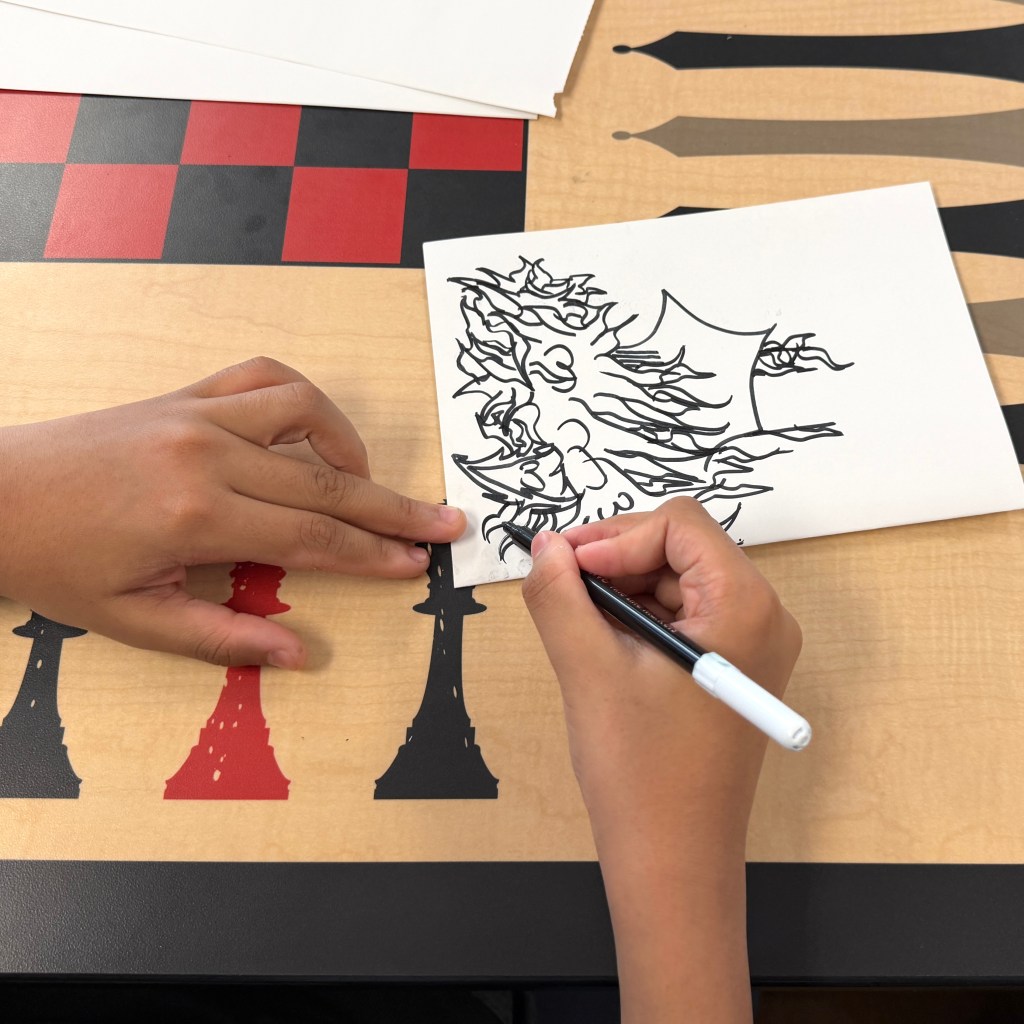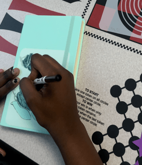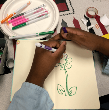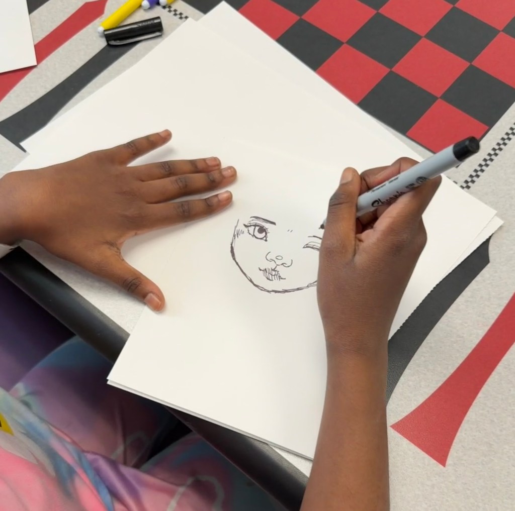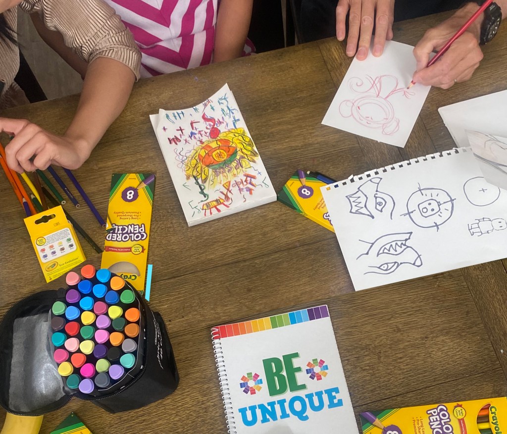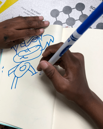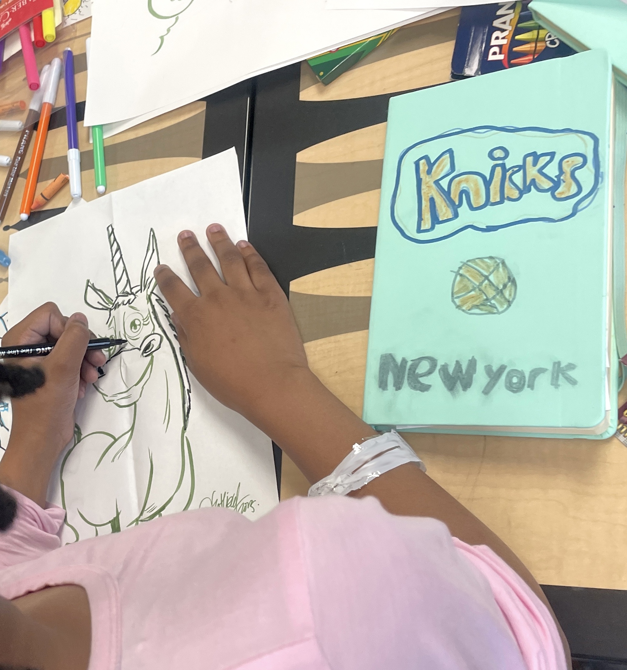 The kids used the Blick Art Materials kits we gave them to trace and make these characters their own. One little girl designed colorful harlequin costumes while another tailored her sketch book to her favorite basketball team saying, “this is the best day ever!” Doesn’t get much better than that. 🌟