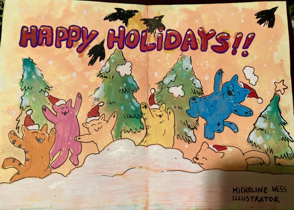Cards pictured here by Micheline Hess, Abby Merrill, Dayna Gonzalez, Pedro Delgado, and Elana Amity.