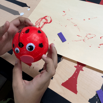 Now you can try it too! Gather a few fun tools like foam balls, heart shapes, paint sticks, and googly eyes – we got ours from Blick Art Materials- and follow this video: https://vimeo.com/798716079
