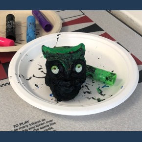 For Halloween this year we headed to Bellevue Hospital to cobble together some creepy crawly characters! Our event Director, Micheline Hess and volunteer Jason Chatfield led a Franken-character game where the kids took turns suggesting body parts like octopus arms and pumpkin heads to create one hilarious new creature. Then each child got an owl figurine to decorate and keep in their room as their own private guardian. ![]()