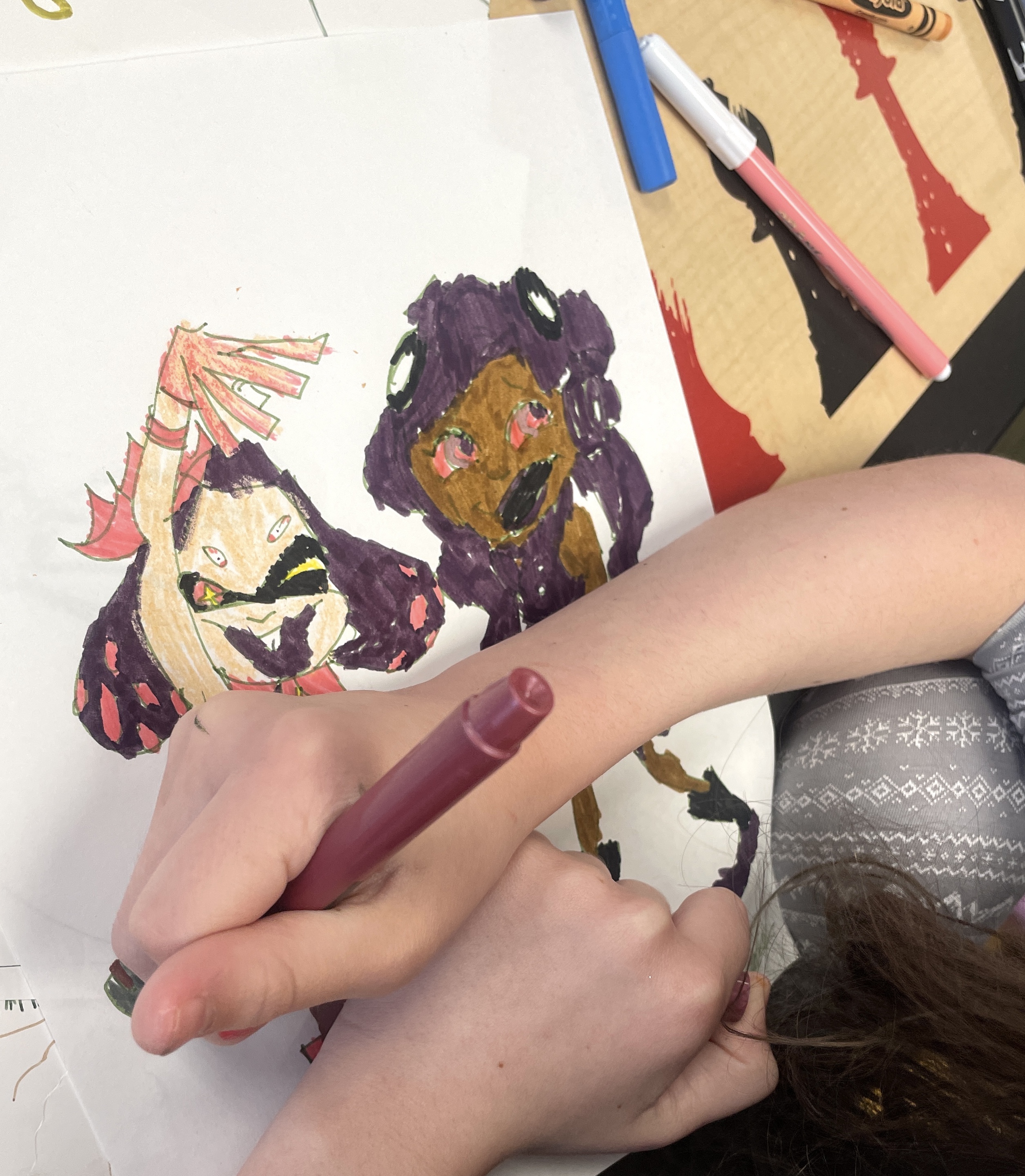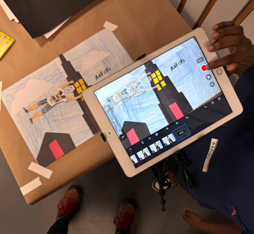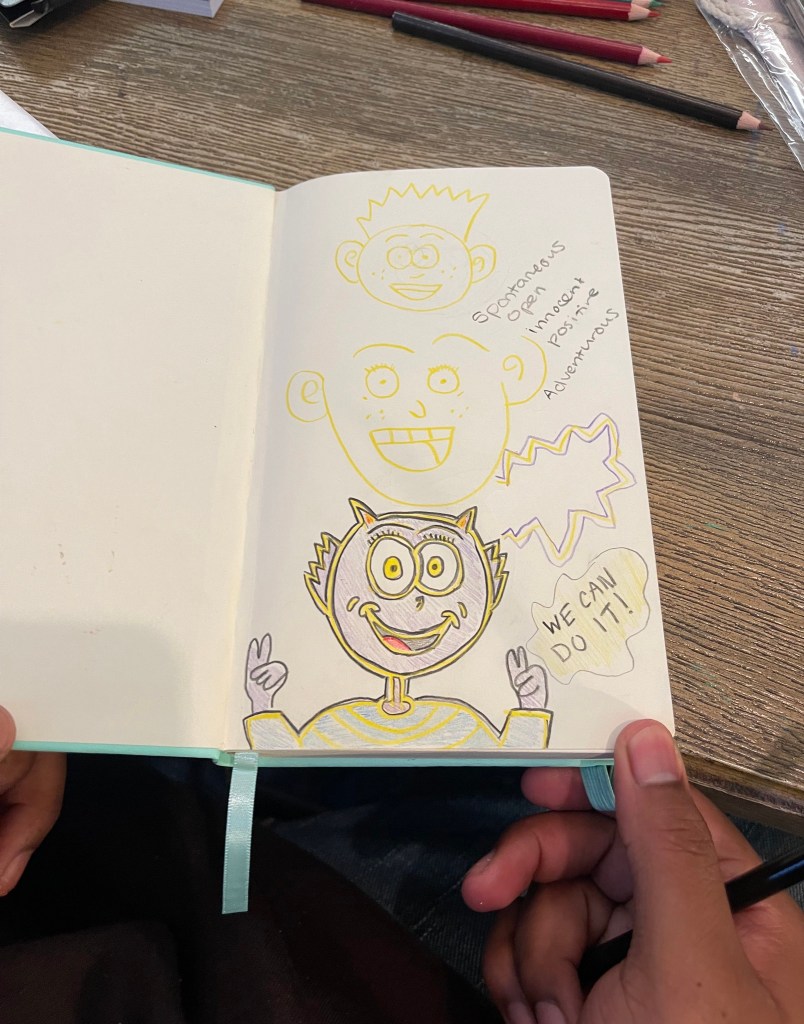 It was so beautiful to spend the day, creating with the kids at St. Mary’s Hospital! Together we made loopy-eyed SpongeBobs, Harry Potter in his full wizard regalia, as well as many portraits and caricatures. The children were brilliant in their additions of props in the background scenes, coming up with details that could really develop the characters they were working on, and most importantly they were really supportive of one another, building trust and confidence as a group.