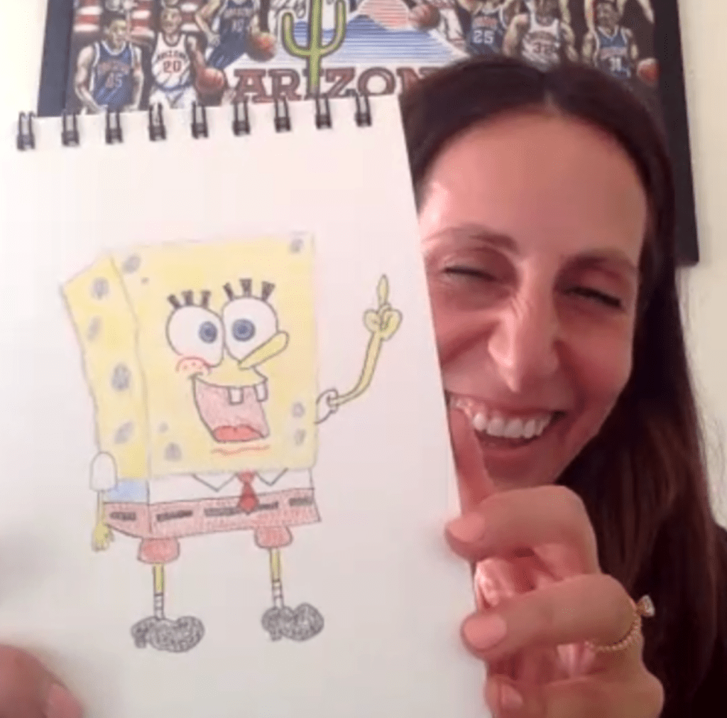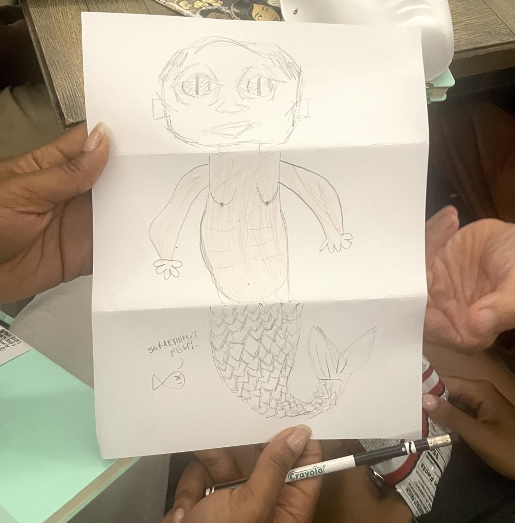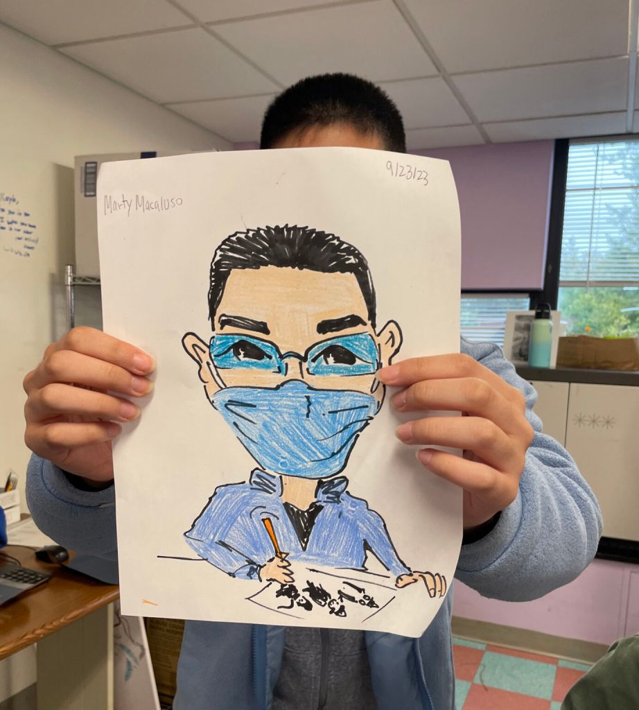 Another great day, drawing with the kids at St. Mary’s Healthcare System for Children. We made caricatures, bat businessmen, basketball stars, and mermaids galore. For a very special treat, we got to see a fantastic animatic made by a young artist we hope to see in our animation studios someday!