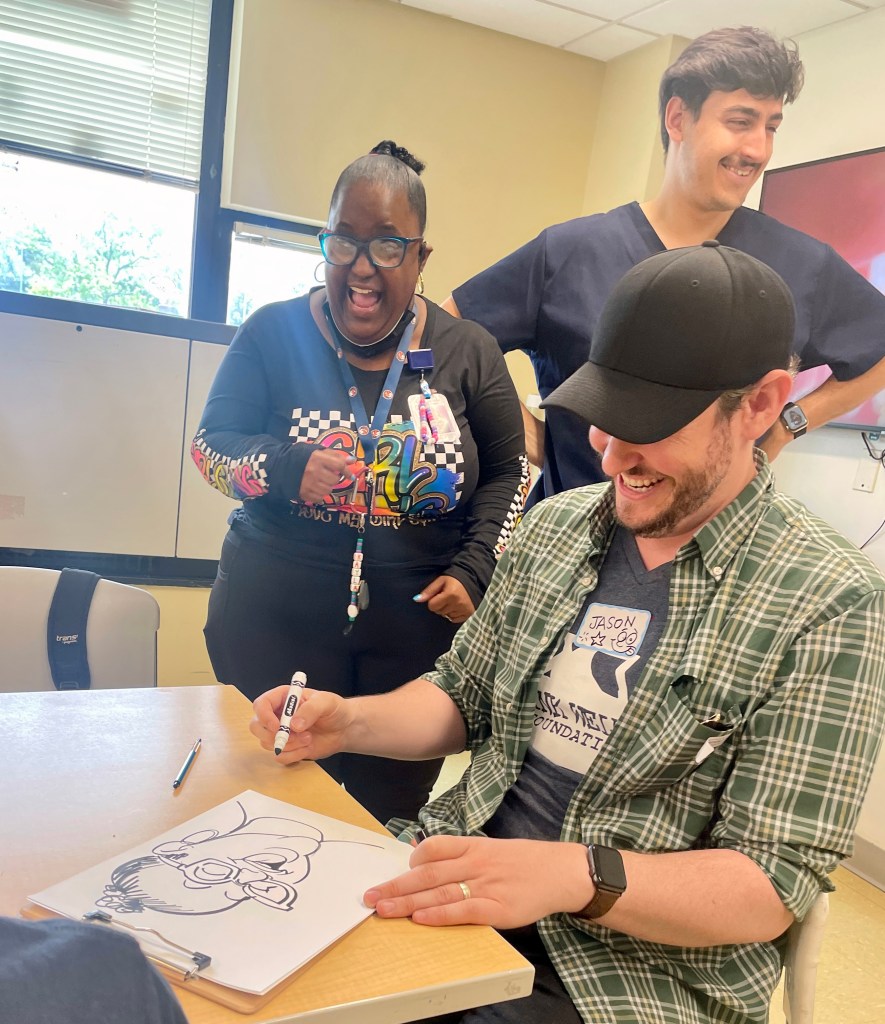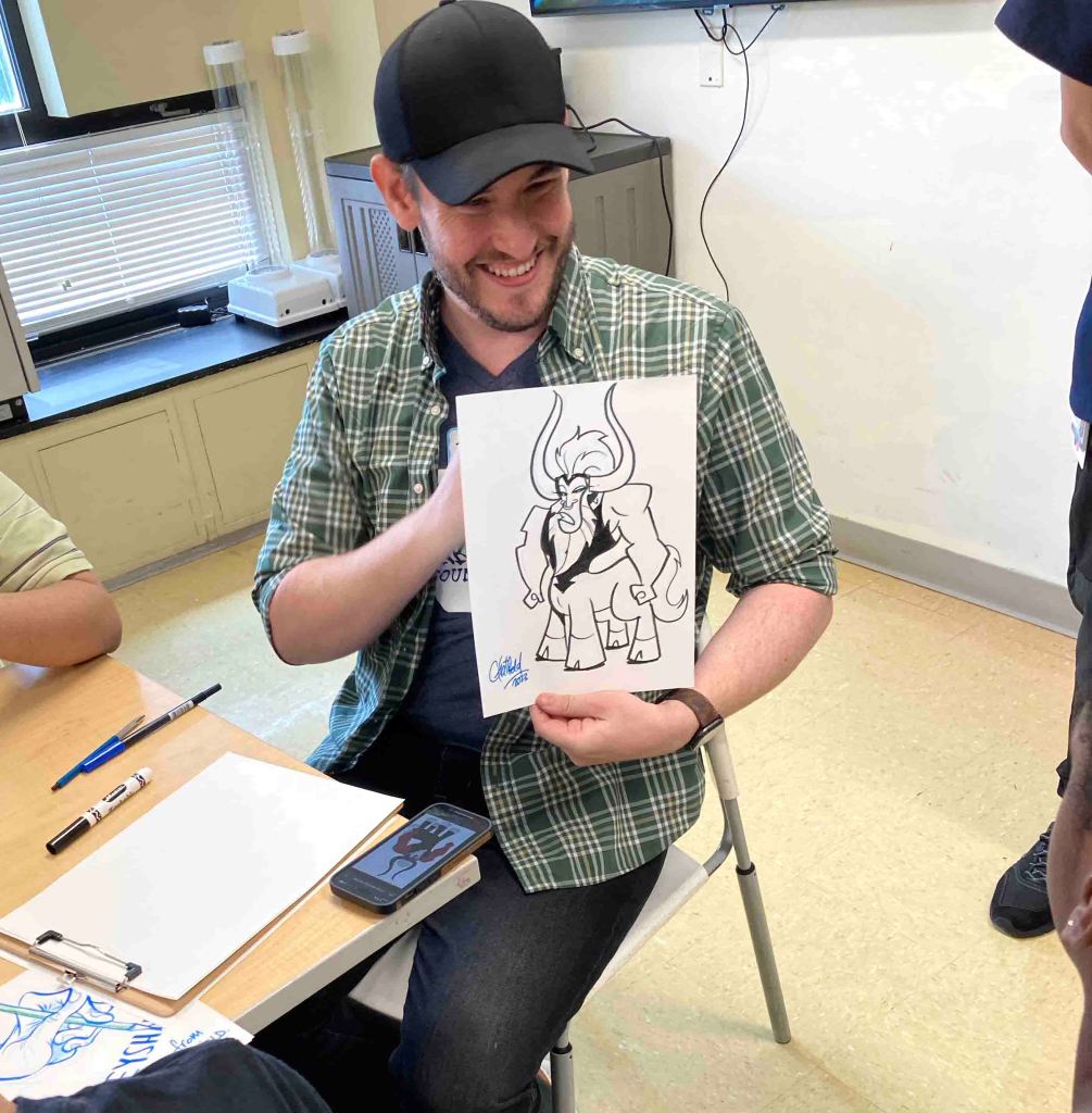 We love drawing with the kids at St. Mary’s Hospital! From classic Disney characters to modern video game villains, pro athlete portraits and all the kids’ caricatures, we’re grateful for every creation we got to make together with this wonderful group.