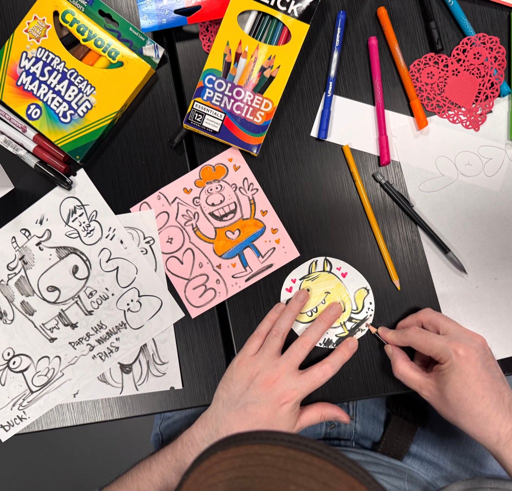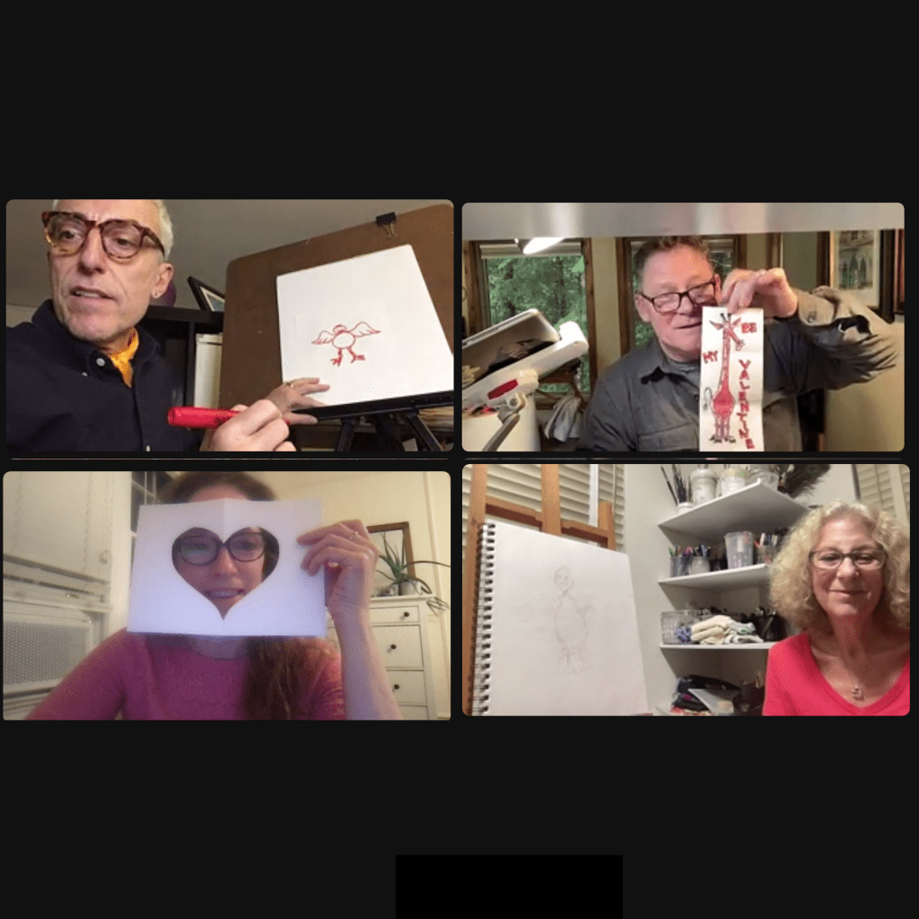 Our hearts are brimming over with Valentine’s joy! Tonight we brought two animators and two fine artists together with the Red Door Community kids to show how to make ducks, giraffes, and roses into cards to give to loved ones.