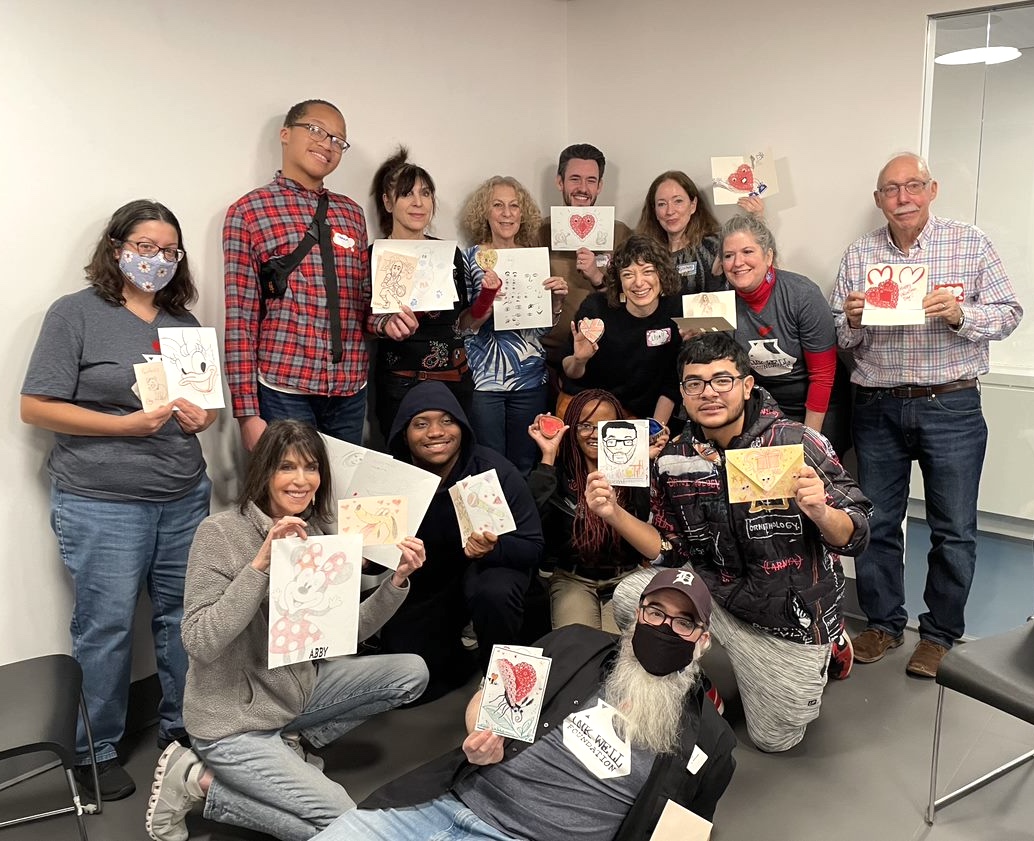 We delivered stacks of handmade Valentine’s Day cards from our animators, illustrators, and cartoonists to the doorstep of each child being served by Bellevue Hospital’s pediatric in-patient psychiatry team. Every child also received their very own art kit so they could make their own cards to exchange with one another or give to their loved ones.