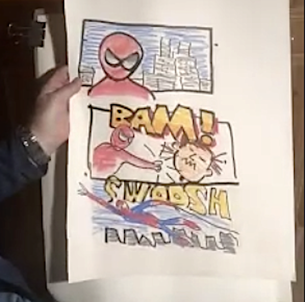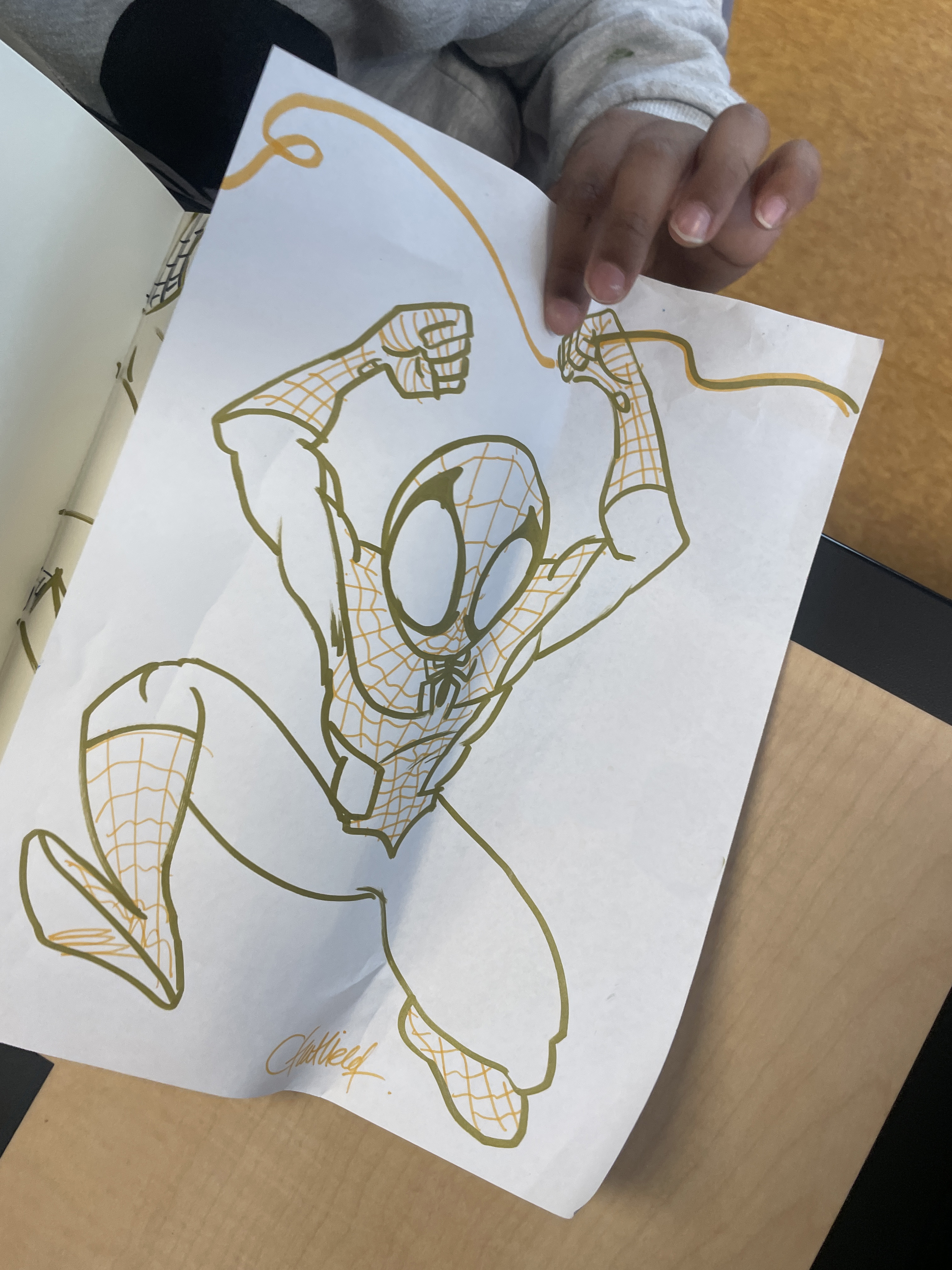Then Jason Chatfield sprang into action when a boy requested a Spidey comic. And Elizabeth Winter soared in with a winged unicorn by request. 🦄