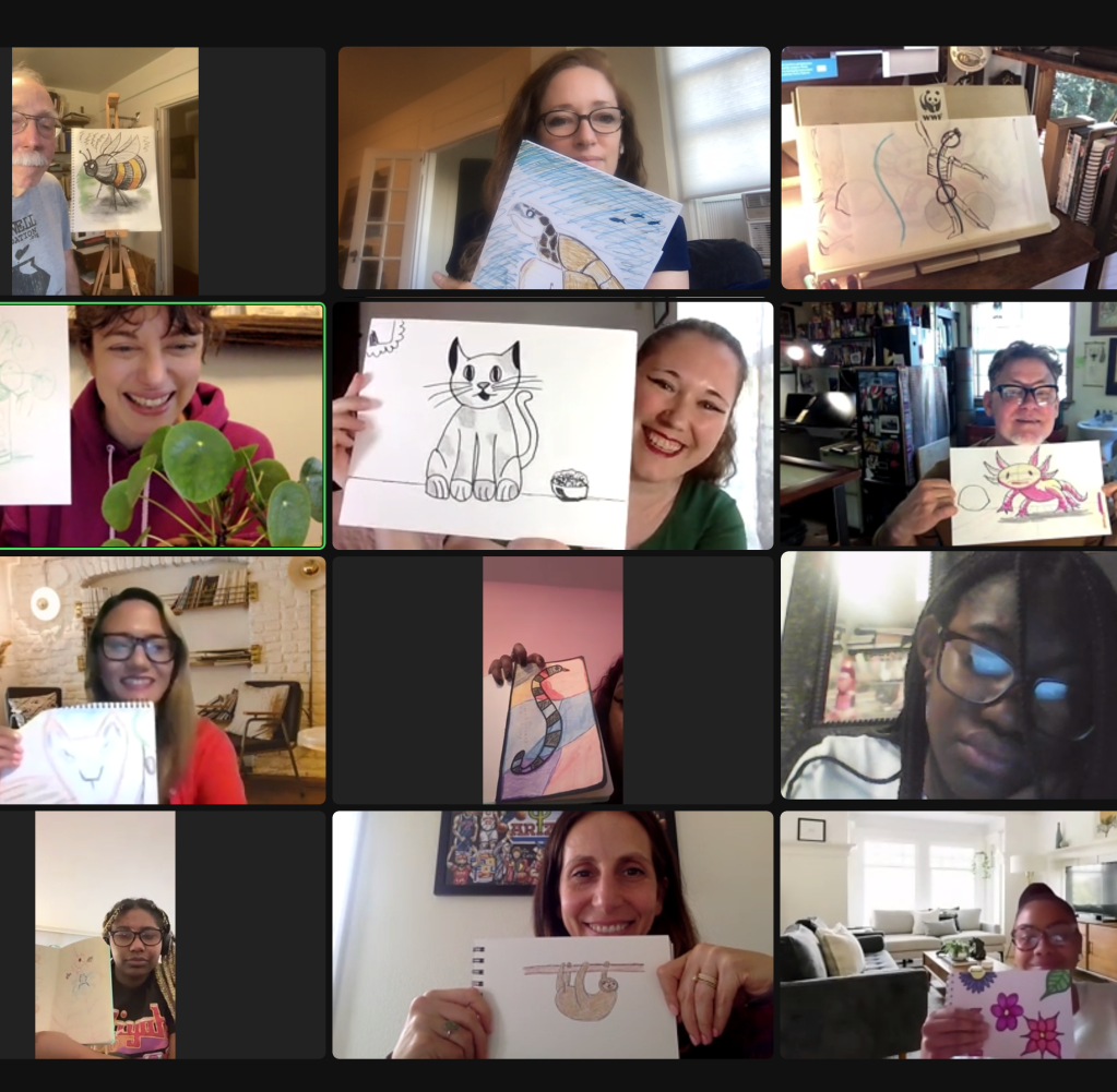 Thanks to Event Director, Lisa LaBracio, for leading this very special night and to our dear volunteers for sharing skills from their careers in animation, illustration, and cartooning: Elana Amity, Pedro Delgado, Stefano, Imbert, Ellie Rahim, Tim Savage, and a big welcome to first-time volunteer, Stephen Kroninger!!
