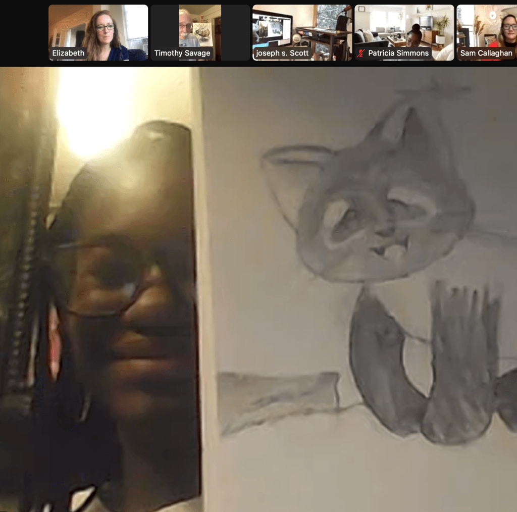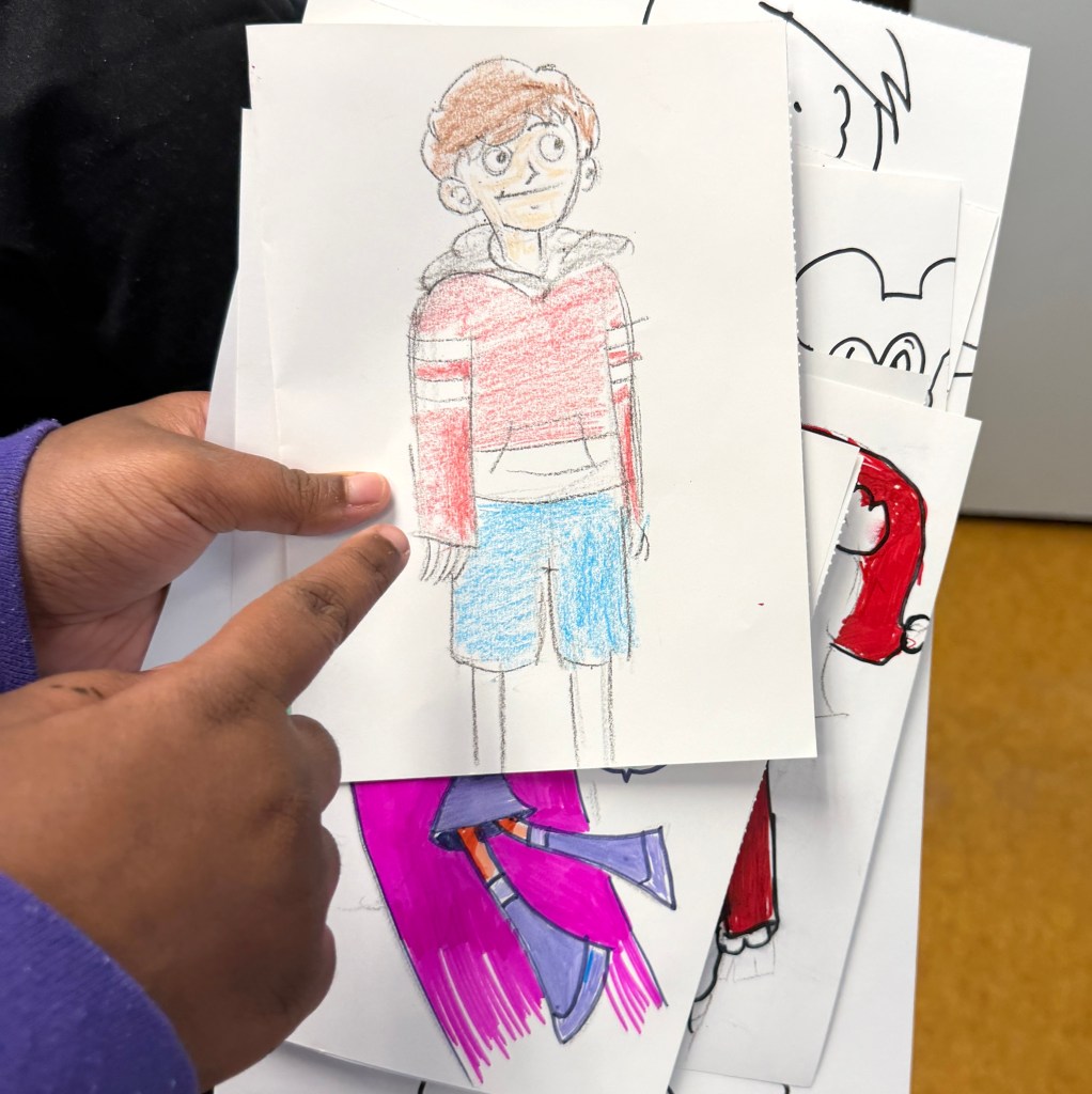 Thanks to Taylor, Chaquima, and Aneres for sharing your art and great ideas; to their mentors, Katie and Jennie for their warm, fun, supportive energy; to the Ink Well volunteers, Tim Savage, Joseph Scott, Elizabeth Winter, and Event Director Lisa LaBracio, for adding insights from their careers in animation and illustration.