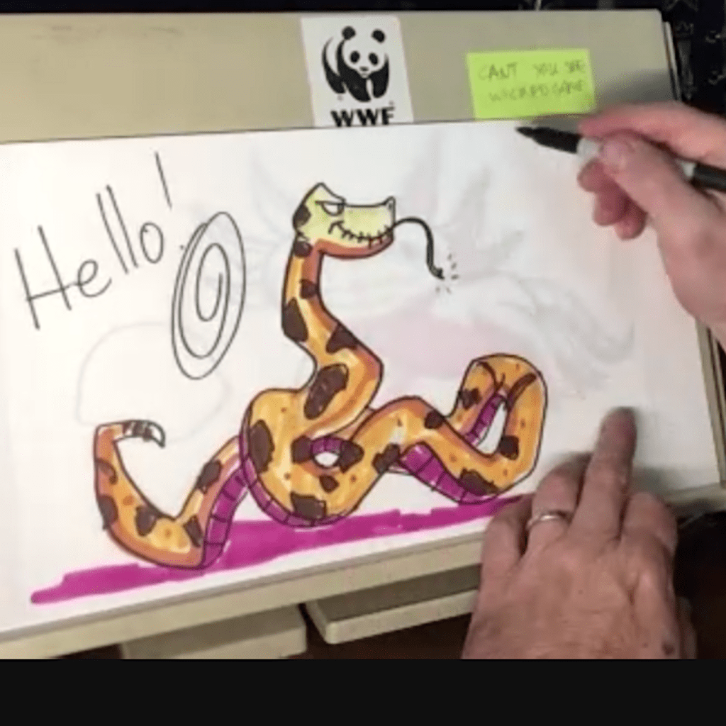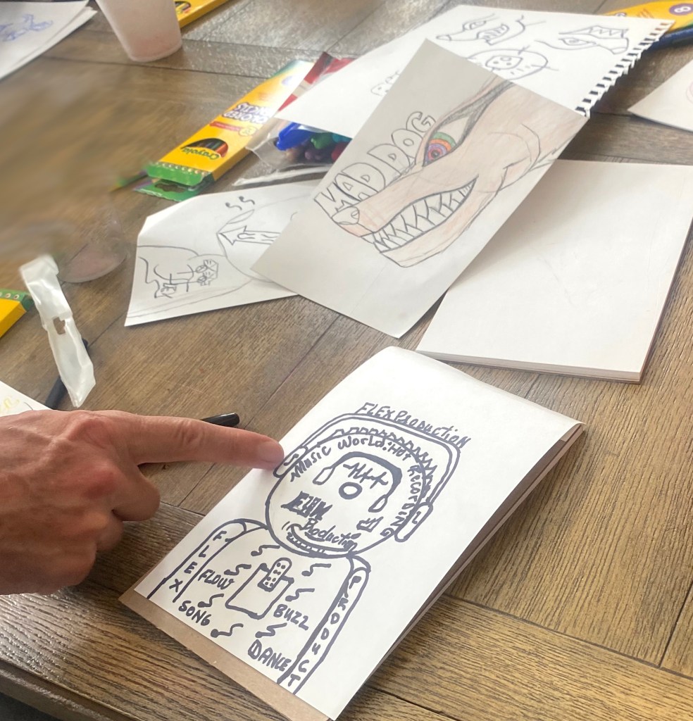 Extraordinary day drawing with the wonderful children at St. Mary’s Hospital! The kids leapt right into depictions of birds, trains, astronauts, and octopus aliens abducting cats and Machine Gun Kelly!? 😂