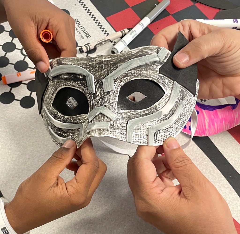 We loved our Halloween theme night with the youth at Covenant House! We created marvelous masks and character designs that we applied to “exquisite corpse” drawings. So grateful to work with this incredibly talented group of youth, who are all specifically interested in developing arts skills while being supported through homelessness or other home-life challenges at Covenant House of California. We also shared face painting kits, drawing journals and utensils, candy, and general merriment that lasted long into the evening, thanks to our volunteers, Jeremy Arambulo, Bennoit Le Pennec, Elizabeth Winter, and Zane Yarbrough!