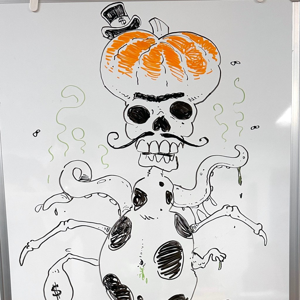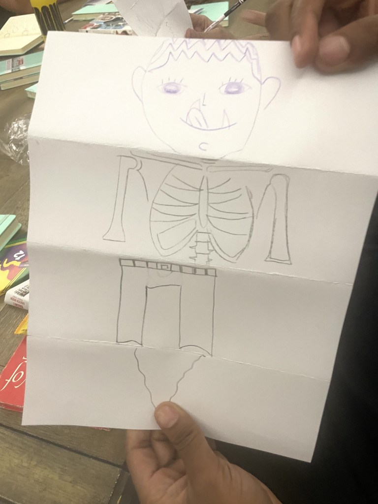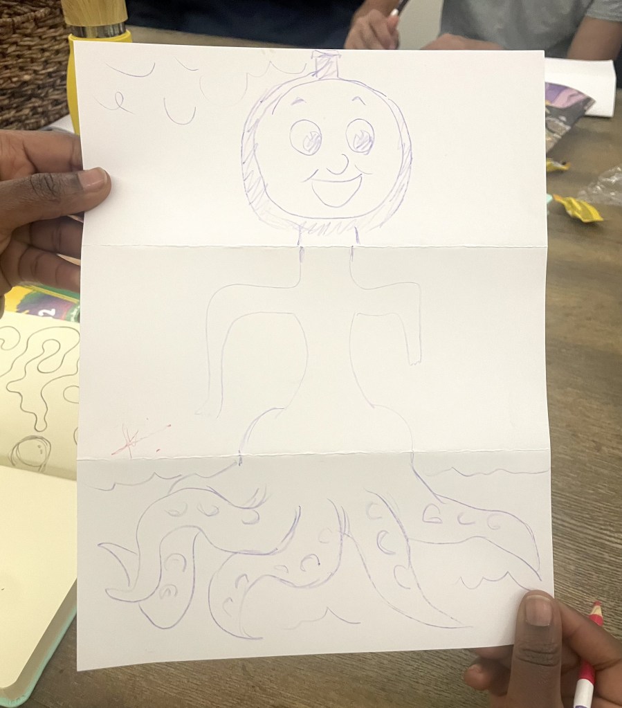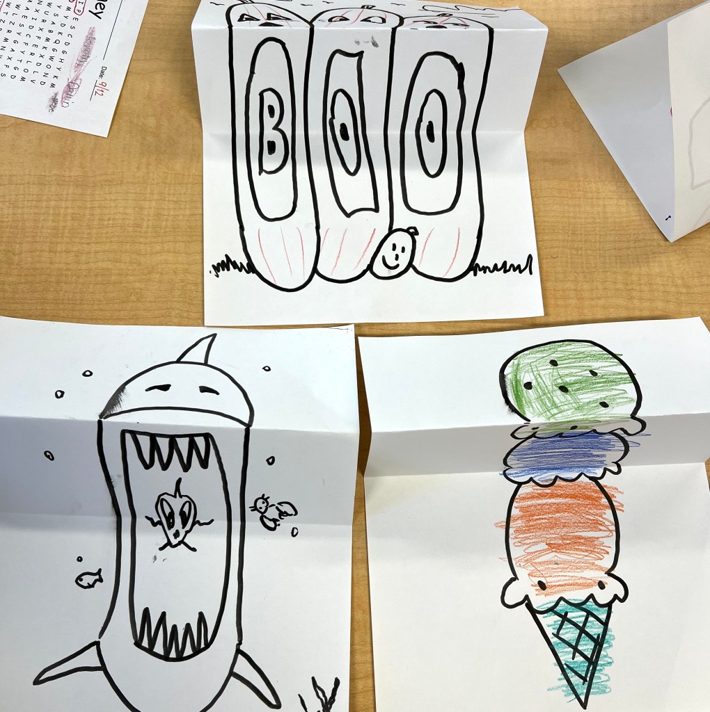 The day ended with a little show and tell where each child described how they arrived at their original kooky creation. One kid said he couldn’t wait to show his werewolf-headed ghost with mushroom feet to his mom! ![]()