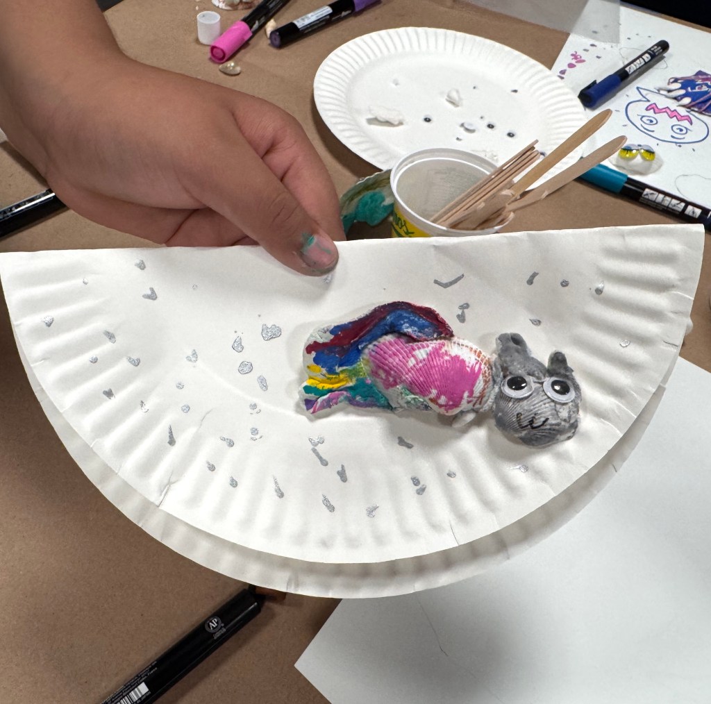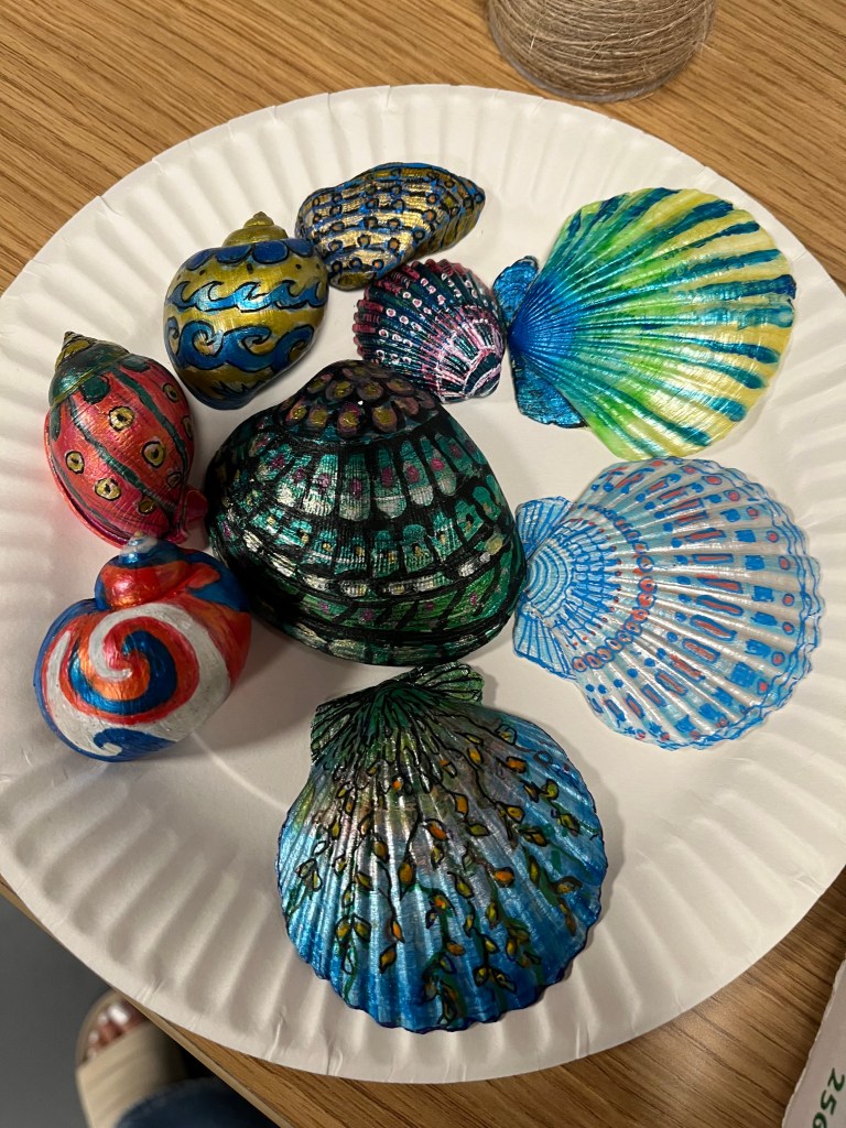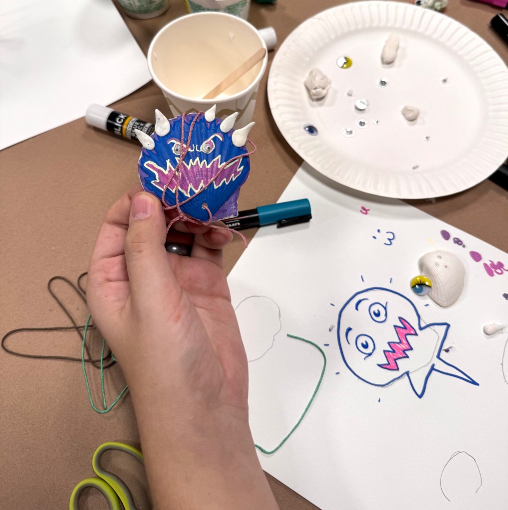We had a super spe-shell 🐚 day with the New Alternatives for Children kids today! We helped this crafty group turn natural shells into Ninja Turtles, Courage the Cowardly Dog, and secret troves for hidden messages.