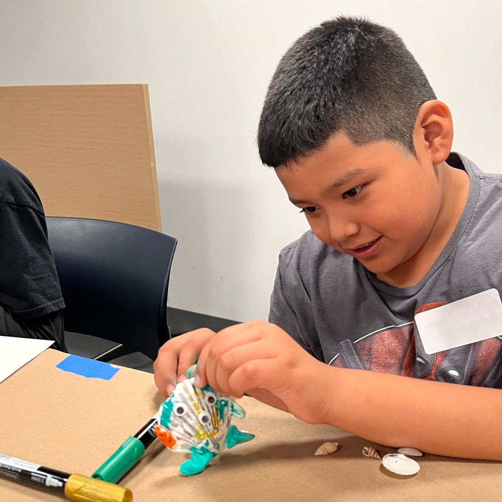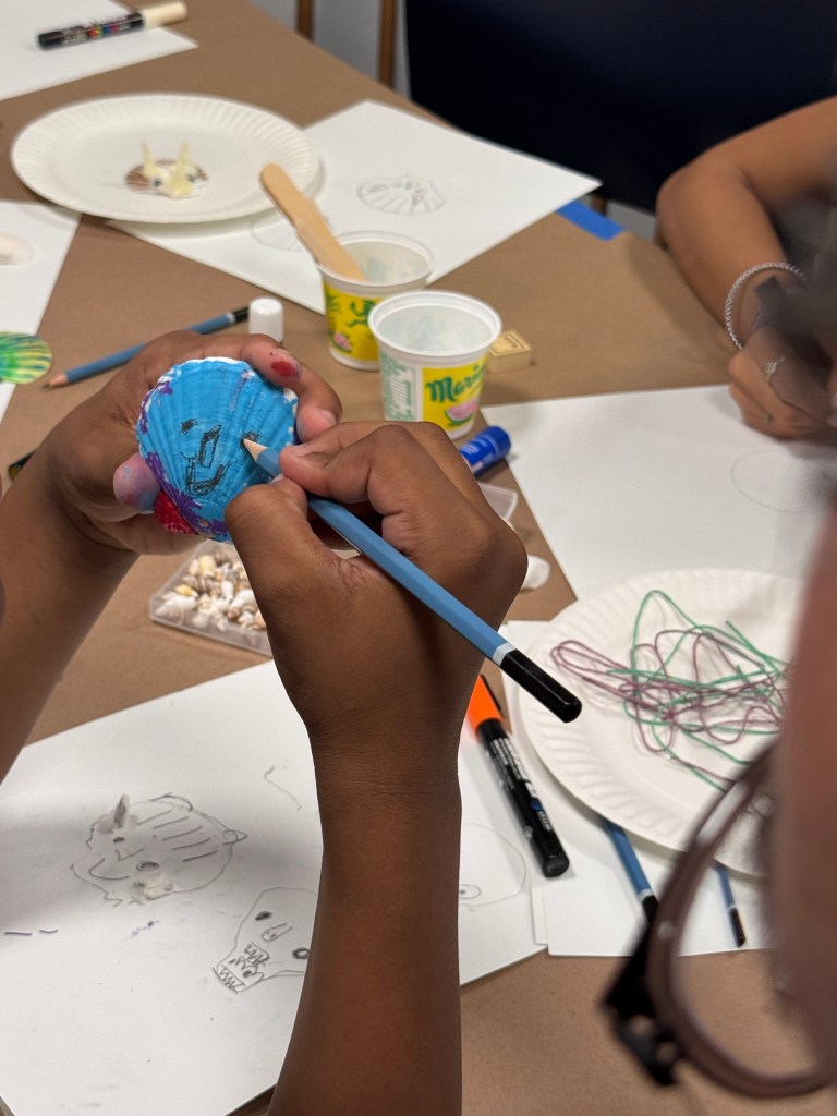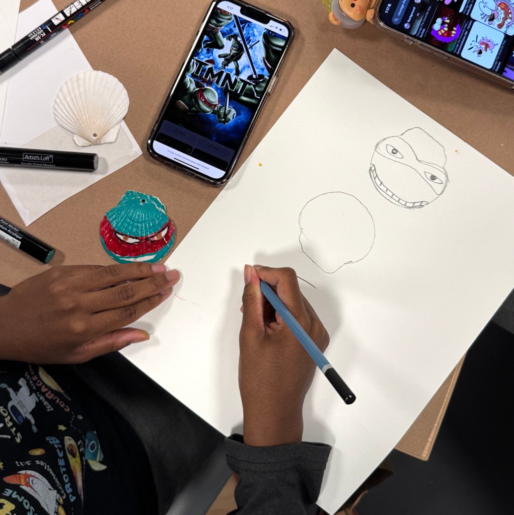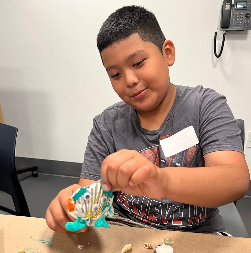 We had a super spe-shell 🐚 day with the New Alternatives for Children kids today! We helped this crafty group turn natural shells into Ninja Turtles, Courage the Cowardly Dog, and secret troves for hidden messages.