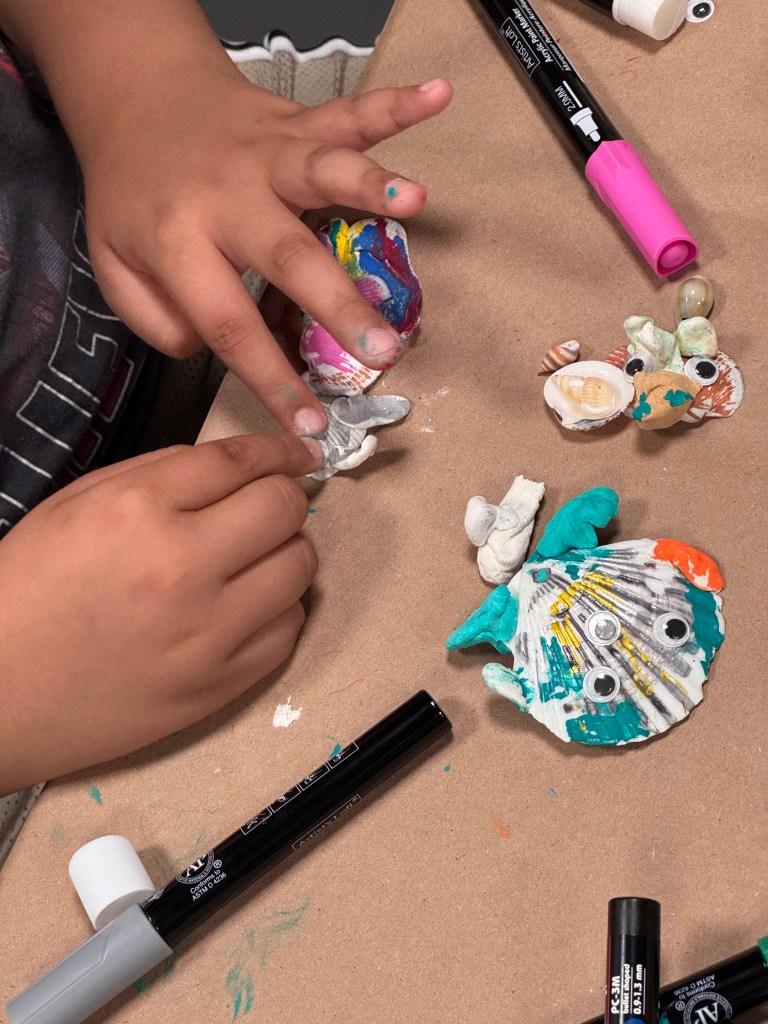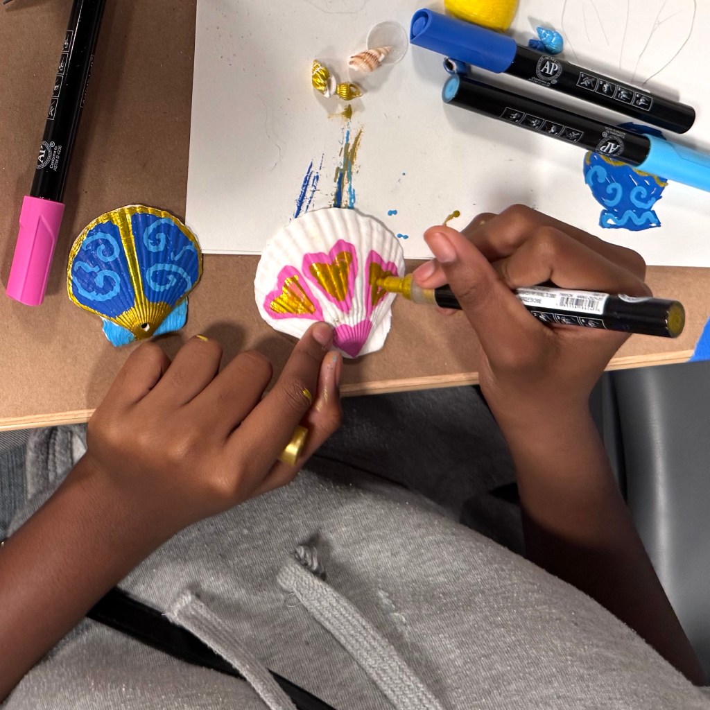 And thanks to Blick Art Materials for helping us share art kits with each of the kids so they can keep on keeping on all these groovy shell creations! ❤️