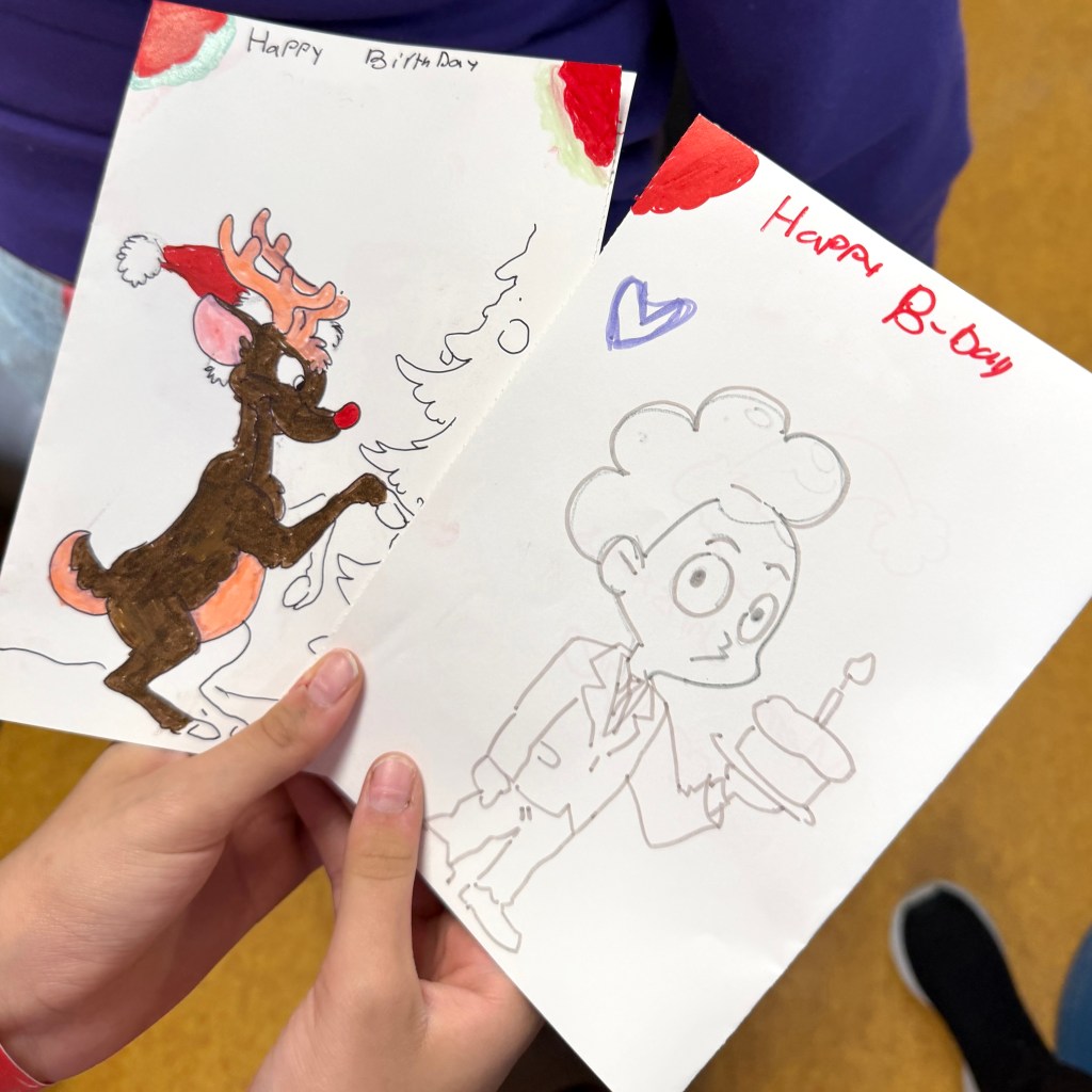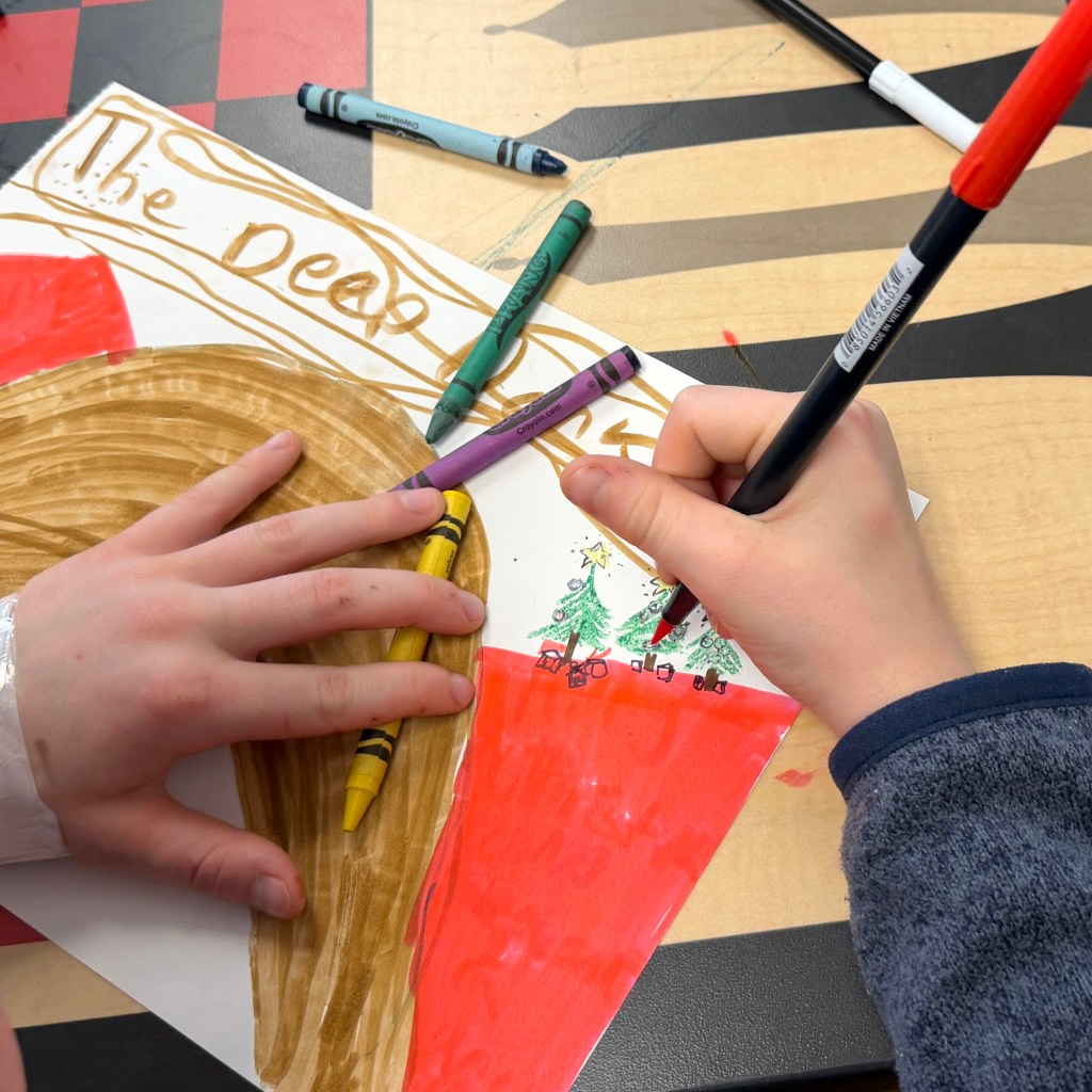 Just in time for the holidays, we teamed up with the kids staying at Bellevue Hospital to help them make drawings and cards they could give to their family and friends as gifts! Reindeer sailed through the skies, Sonic screamed down the slopes, and Titan TV Man stomped around looking for his presents. There was also one sweet birthday boy there who got several cards made just for him.