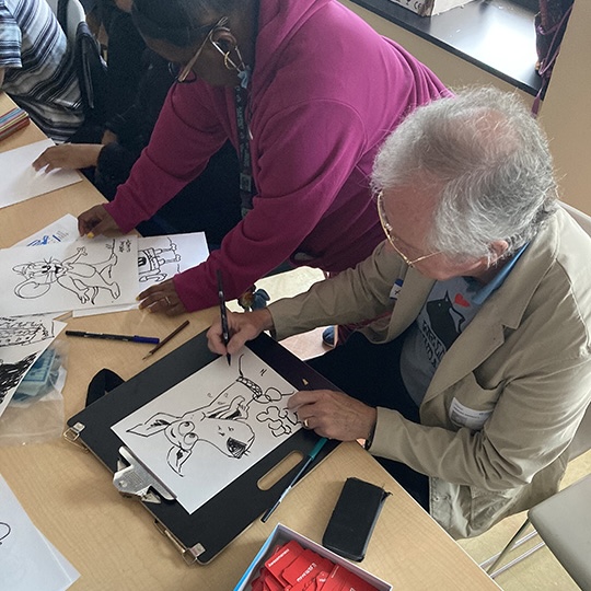 Rounding out the holiday season, we had a joyous time with the children of St. Mary’s Hospital, drawing caricatures and wintry scenes! Thanks to Tim Savage for his leadership as Event Director for all our activities at St. Mary’s, and to our dear pro artist volunteers: Ray Alma, Bil Donovan, Marty Macaluso, Oded Naaman, Joyce Pedretti, and Adrian Sinnott for sharing their time and talents.